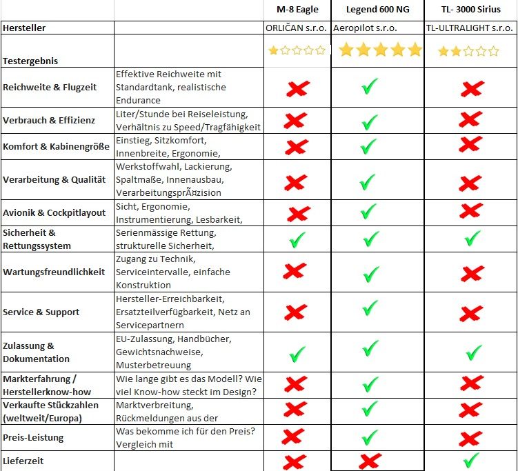 Die Aeropilot Legend 600 überzeugt im UL-Vergleich 2025 mit der Bestnote 1,2